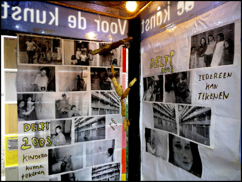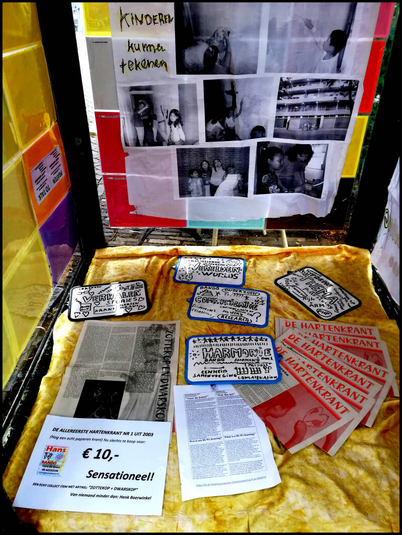 During the last performance in Delft (end of September 2020) 'THE PARADISE GATE ' by H&H (Hans & Henk) it was raining catch and dogs. Yet it was dry under the roof of the HEMA + young adults danced. (As you can see, Piet and camel dog were provided with mouth masks in this time, they just don't know how to wear them very well.)